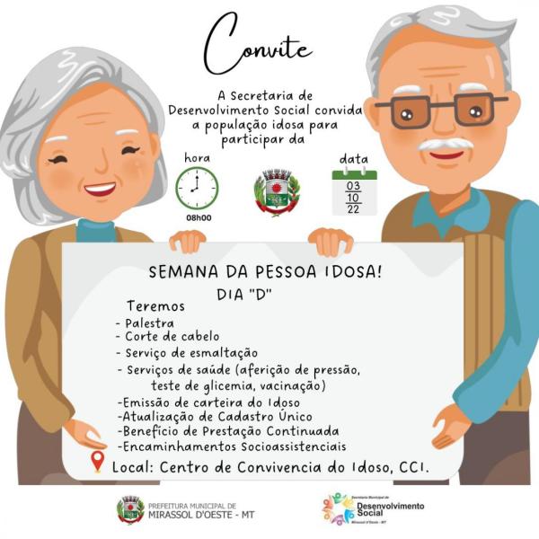 A Secretaria de Desenvolvimento Social convida a população idosa para participar da semana da pessoa idosa!