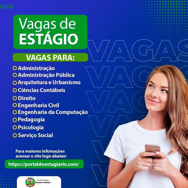 A Prefeitura Municipal de Mirassol D'Oeste está com vagas abertas para estágio em diversas áreas. Aproveite essa oportunidade de crescer profissionalmente e contribuir com nossa cidade!