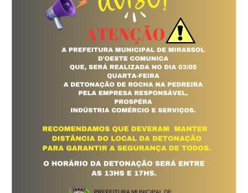 AVISO DE DETONAÇÃO DE ROCHA NA PEDREIRA PELA EMPRESA RESPONSÁVEL PROSPÉRA!