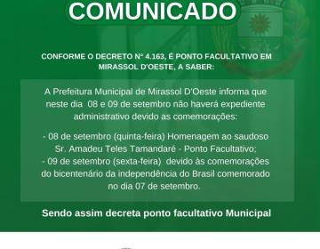 COMUNICADO SOBRE O PONTO FACULTATIVO!