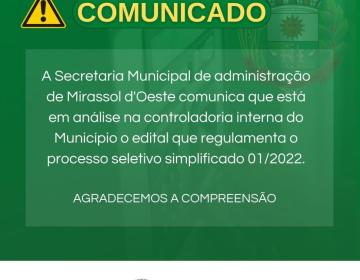 Atenção população de Mirassol d’Oeste