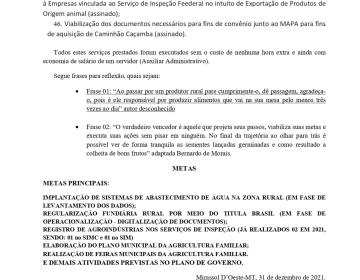 RELATÓRIO GERAL DE ATIVIDADES DA SECRETARIA DE DESENVOLVIMENTO SUSTENTÁVEL DE MIRASSOL D'OESTE-MT, PERIODO DE 04 DE JANEIRO A 31 DE DEZEMBRO DE 2021.