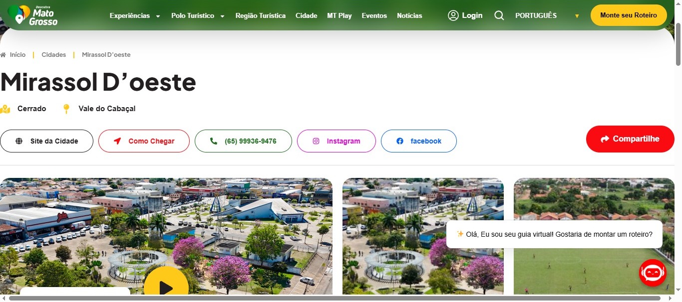 Paisagens naturais belíssimas e a ruralidade são características de Mirassol D’Oeste, MT. Situado a 320 km da capital Cuiabá, na Região Turística Vale do Cabaçal. Vocacionado principalmente, para o turismo rural, o município se destaca por suas paisagens naturais, que entrecortam as várias pequenas propriedades produtoras de leite, queijo e outros produtos oriundos da agricultura familiar. Balneários e trilhas, em meio a natureza contam um pouco da história miradolense, também, compõem a potencialidade desse destino.